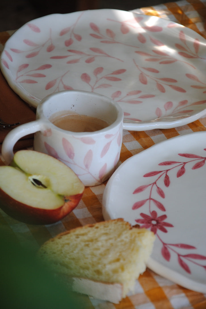 Questi piatti e sono interamente modellati e dipinti a mano, disponibili con diverse decorazioni e colori, su uno sfondo di ceramica bianca dal colore bianco panna.